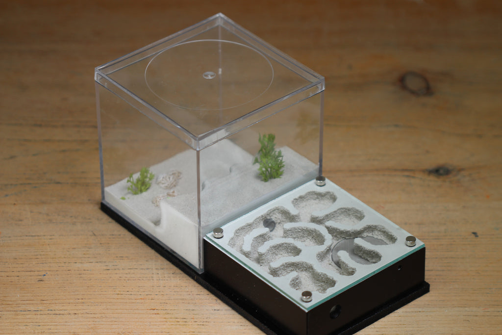The Fallen Fortress is a new formicarium design from Tar Heel Ants. This design for your ant colonies features a 4x4x4" foraging area magnetically attached to the back of a 4x4x2 inch nest. This is a very similar design to our popular Fortress formicarium.