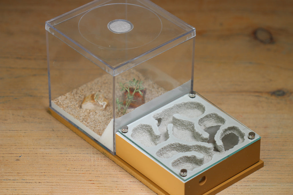 The Fallen Fortress is a new formicarium design from Tar Heel Ants. This design for your ant colonies features a 4x4x4" foraging area magnetically attached to the back of a 4x4x2 inch nest. This is a very similar design to our popular Fortress formicarium.