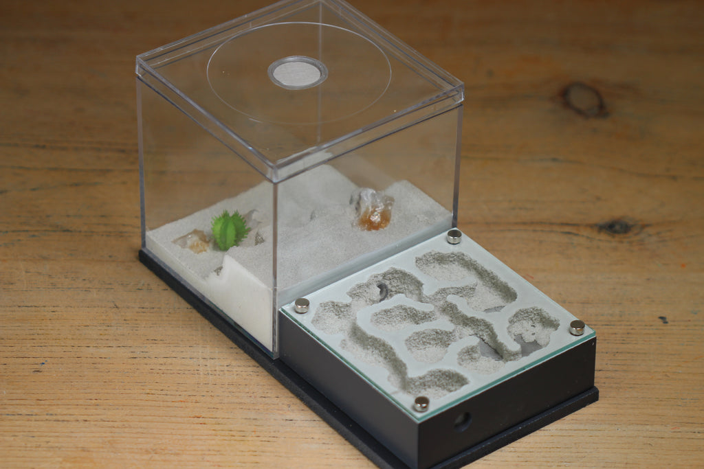 The Fallen Fortress is a new formicarium design from Tar Heel Ants. This design for your ant colonies features a 4x4x4" foraging area magnetically attached to the back of a 4x4x2 inch nest. This is a very similar design to our popular Fortress formicarium.