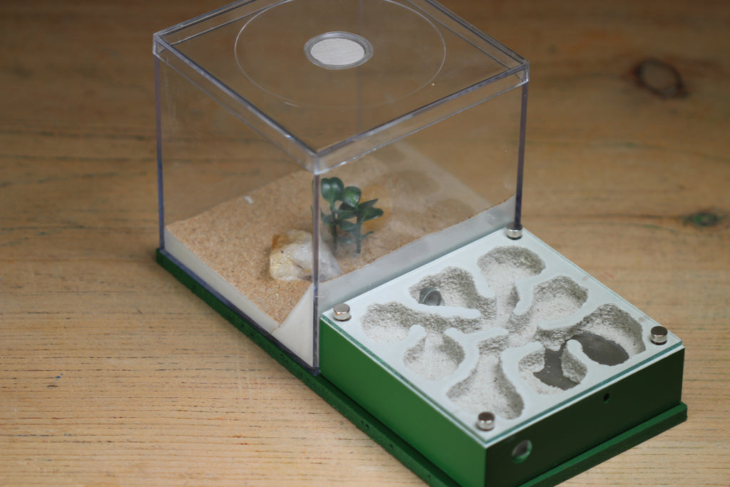The Fallen Fortress is a new formicarium design from Tar Heel Ants. This design for your ant colonies features a 4x4x4" foraging area magnetically attached to the back of a 4x4x2 inch nest. This is a very similar design to our popular Fortress formicarium.