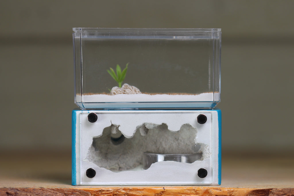Included with this purchase is a syringe for hydration, Mini Hearth PDF guide, nestmates and stoppers, lid, and magnetic glass panel.