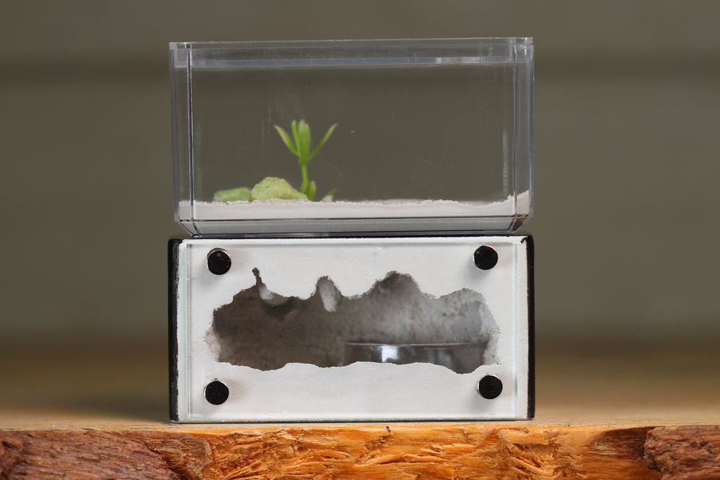Included with this purchase is a syringe for hydration, Mini Hearth PDF guide, nestmates and stoppers, lid, and magnetic glass panel.