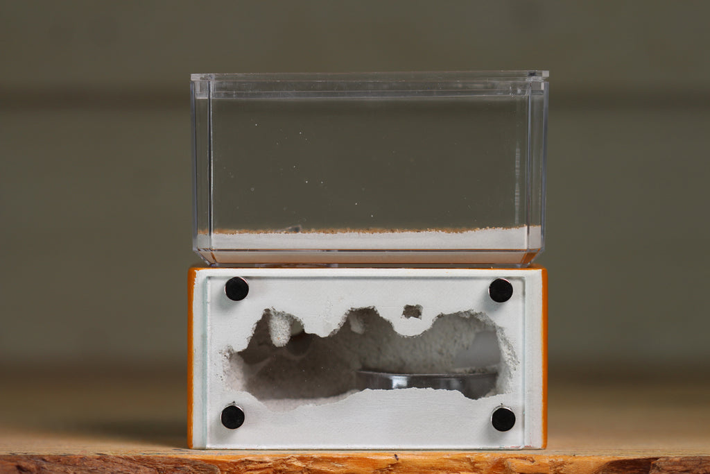 Included with this purchase is a syringe for hydration, Mini Hearth PDF guide, nestmates and stoppers, lid, and magnetic glass panel.