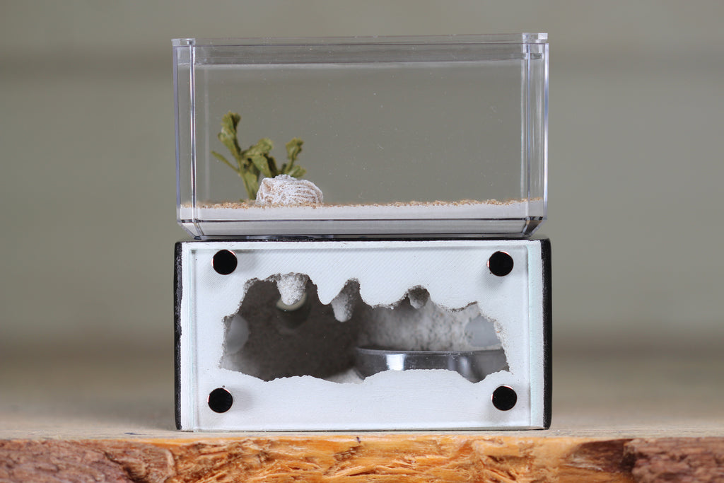 Included with this purchase is a syringe for hydration, Mini Hearth PDF guide, nestmates and stoppers, lid, and magnetic glass panel.
