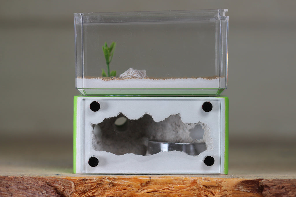Included with this purchase is a syringe for hydration, Mini Hearth PDF guide, nestmates and stoppers, lid, and magnetic glass panel.