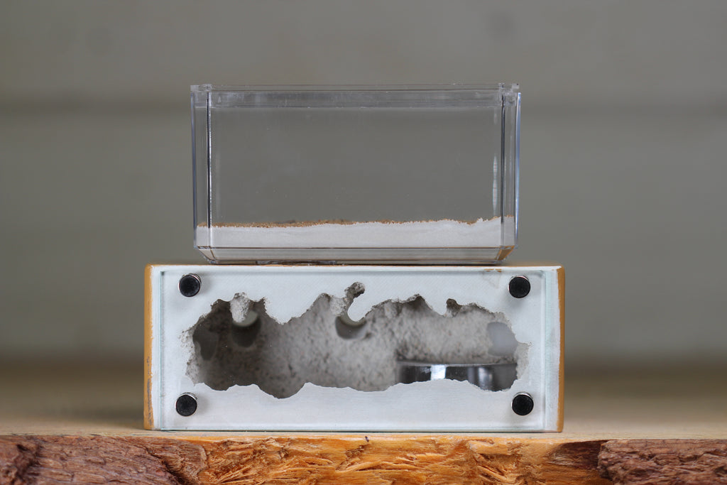 Included with this purchase is a syringe for hydration, Mini Hearth PDF guide, nestmates and stoppers, lid, and magnetic glass panel.
