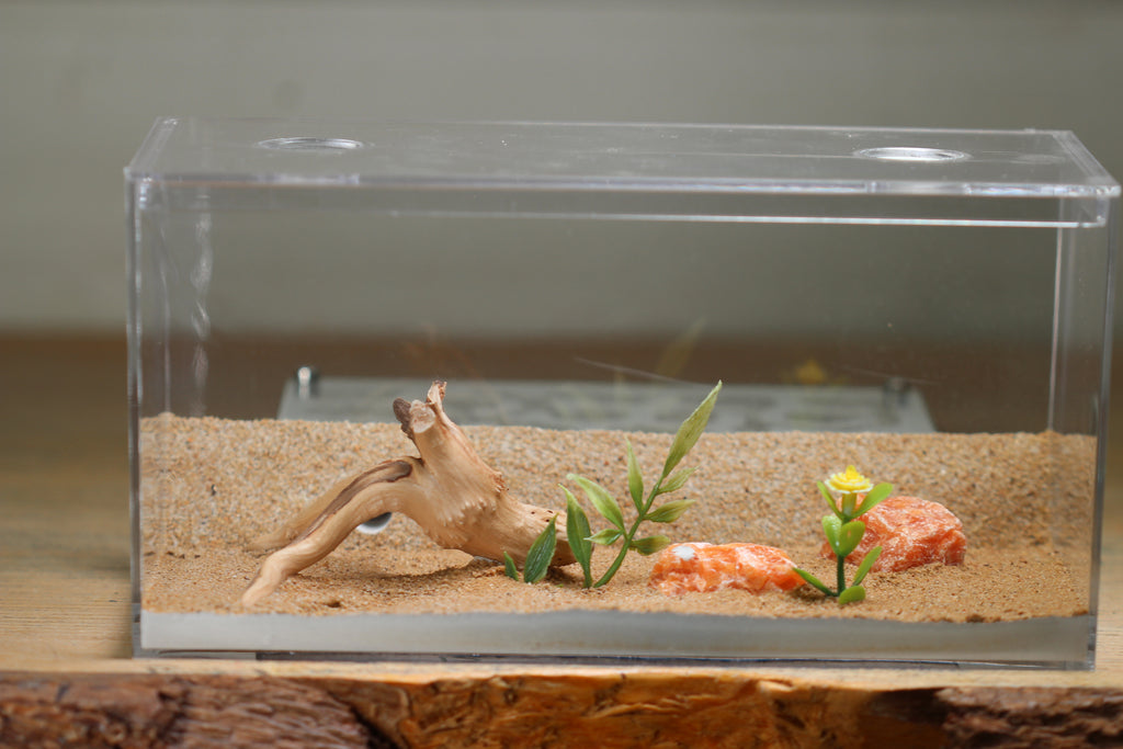 This smaller version of the Labyrinth formicarium. The Mini Labyrinth formicarium is a 4"x6" (100mmx150mm) formicarium attached magnetically (as well as by a small vinyl tubing insert) to the accompanying foraging area. The nest is completely removable from the foraging area for easy maintenance.