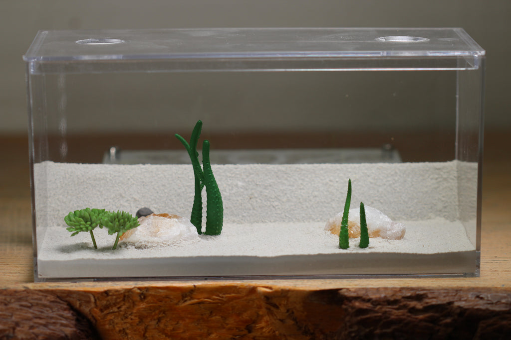 This smaller version of the Labyrinth formicarium. The Mini Labyrinth formicarium is a 4"x6" (100mmx150mm) formicarium attached magnetically (as well as by a small vinyl tubing insert) to the accompanying foraging area. The nest is completely removable from the foraging area for easy maintenance.