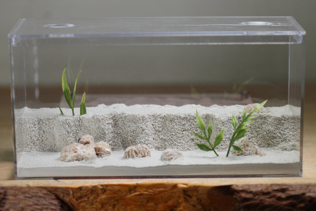 This smaller version of the Labyrinth formicarium. The Mini Labyrinth formicarium is a 4"x6" (100mmx150mm) formicarium attached magnetically (as well as by a small vinyl tubing insert) to the accompanying foraging area. The nest is completely removable from the foraging area for easy maintenance.