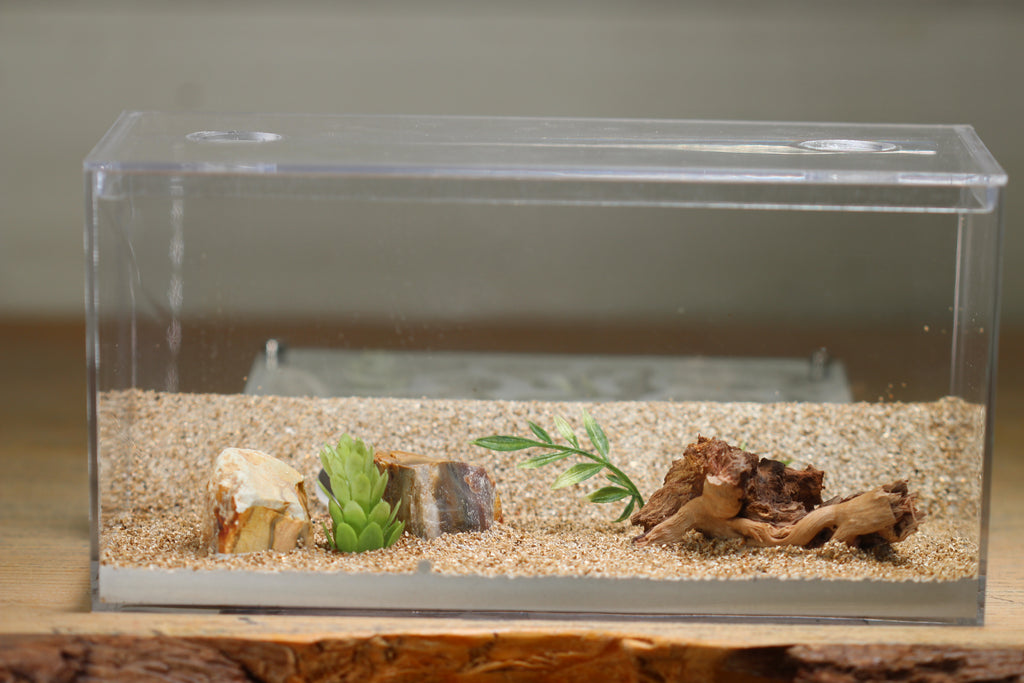 This smaller version of the Labyrinth formicarium. The Mini Labyrinth formicarium is a 4"x6" (100mmx150mm) formicarium attached magnetically (as well as by a small vinyl tubing insert) to the accompanying foraging area. The nest is completely removable from the foraging area for easy maintenance.