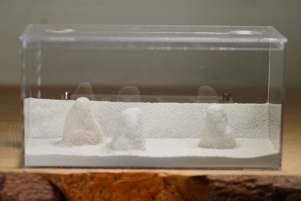 This smaller version of the Labyrinth formicarium. The Mini Labyrinth formicarium is a 4"x6" (100mmx150mm) formicarium attached magnetically (as well as by a small vinyl tubing insert) to the accompanying foraging area. The nest is completely removable from the foraging area for easy maintenance.