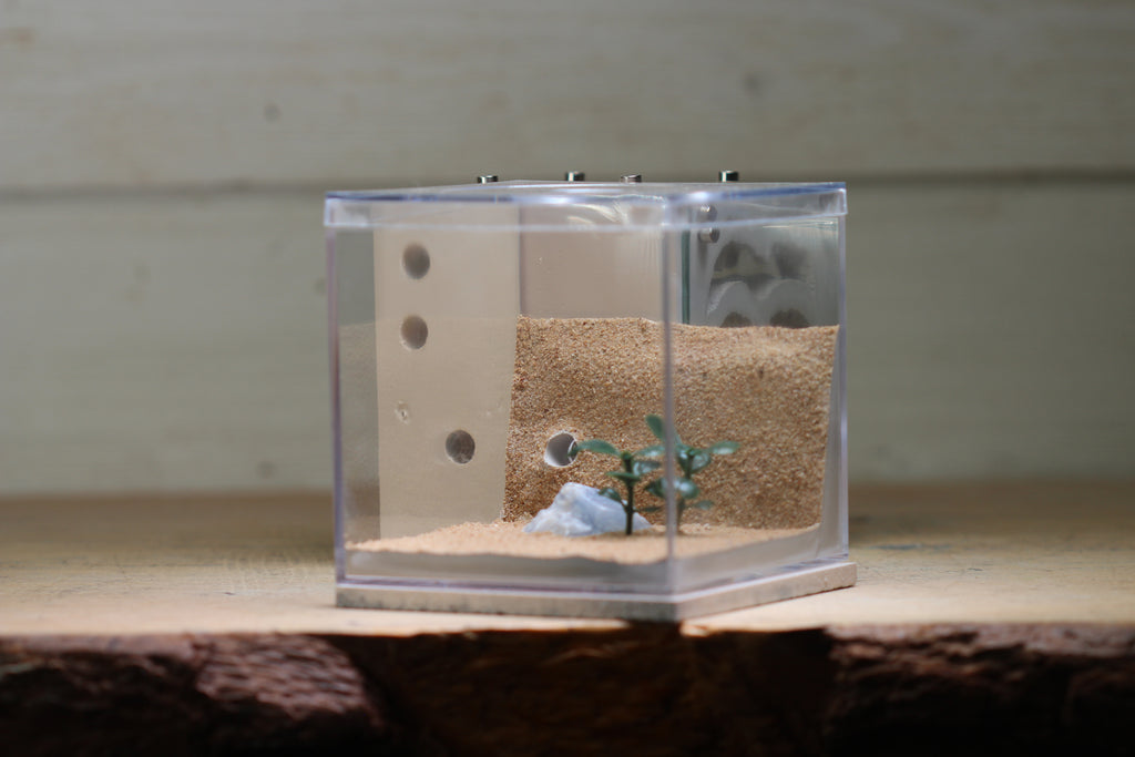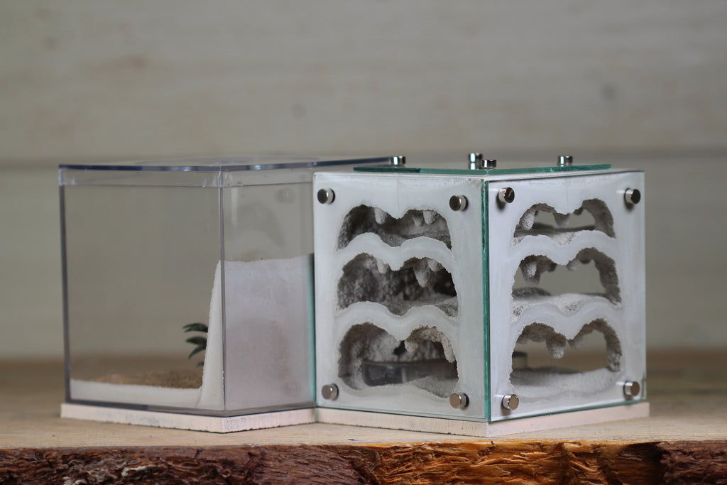 Camponotus spp. - Larger ants typically, our colonies have always utilized the ceilings of formicaria to hang upside-down. This design provides two larger 4x4 caverns for this activity and 4 viewing sides to view these ants hanging from.