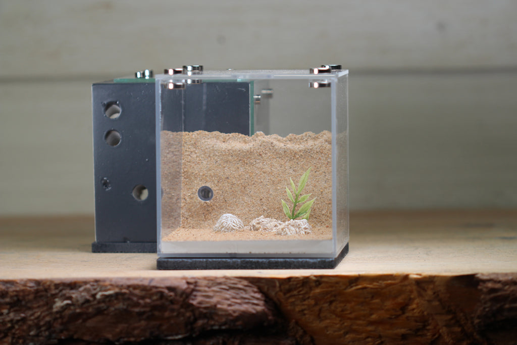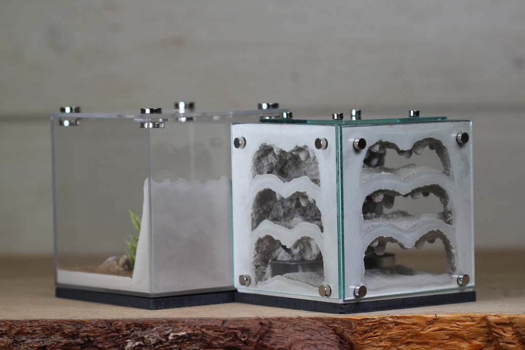 Camponotus spp. - Larger ants typically, our colonies have always utilized the ceilings of formicaria to hang upside-down. This design provides two larger 4x4 caverns for this activity and 4 viewing sides to view these ants hanging from.