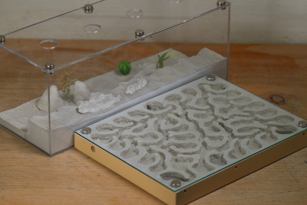 The XL Labyrinth is a much larger version (80 square inches of space versus 35) of the Labyrinth formicarium. Dual Foraging Areas will allow for more controlled feeding experiences and opportunities to disconnect and clean foraging areas without losing the ability to feed. Tempting your favorite ant colonies with some sweets or treats in one foraging area is a great way to find a chance to clean the other!