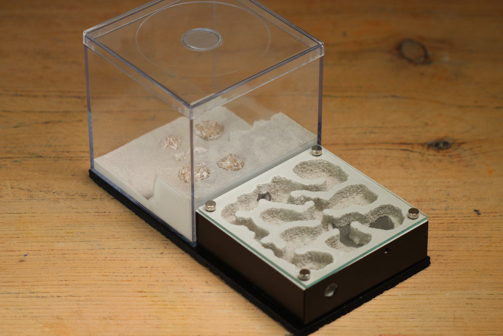 The Fallen Fortress is a new formicarium design from Tar Heel Ants.  This design for your ant colonies features a 4x4x4" foraging area magnetically attached to the back of a 4x4x2 inch nest.  This is a very similar design to our popular Fortress formicarium.