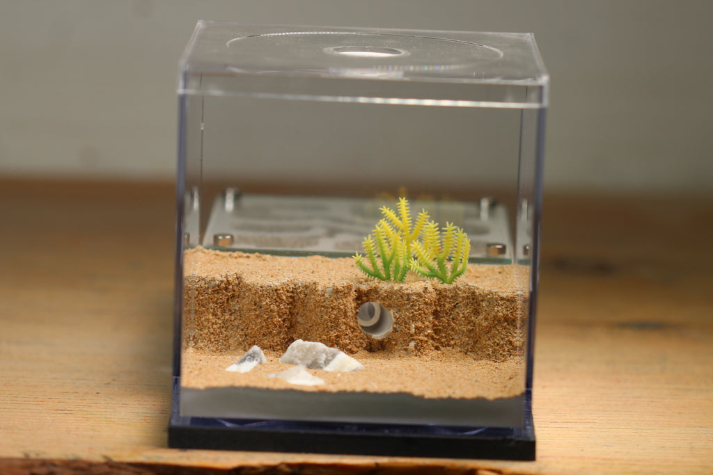 Ordering the product on this page? You will receive the exact formicarium in the photos accompanying this product page. This formicarium has already been made and can be modified only with the options for glass type and removable vent lid.