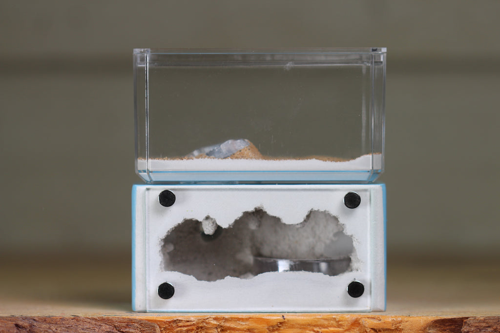 Included with this purchase is a syringe for hydration, Mini Hearth PDF guide, nestmates and stoppers, lid, and magnetic glass panel.