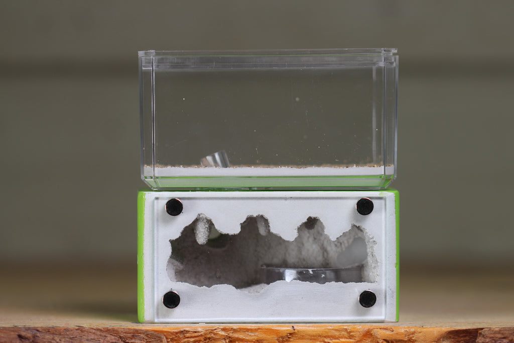 Included with this purchase is a syringe for hydration, Mini Hearth PDF guide, nestmates and stoppers, lid, and magnetic glass panel.