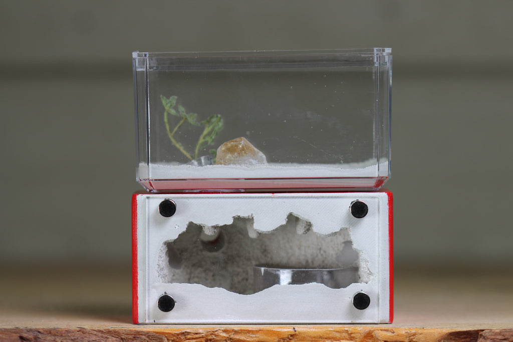 Included with this purchase is a syringe for hydration, Mini Hearth PDF guide, nestmates and stoppers, lid, and magnetic glass panel.