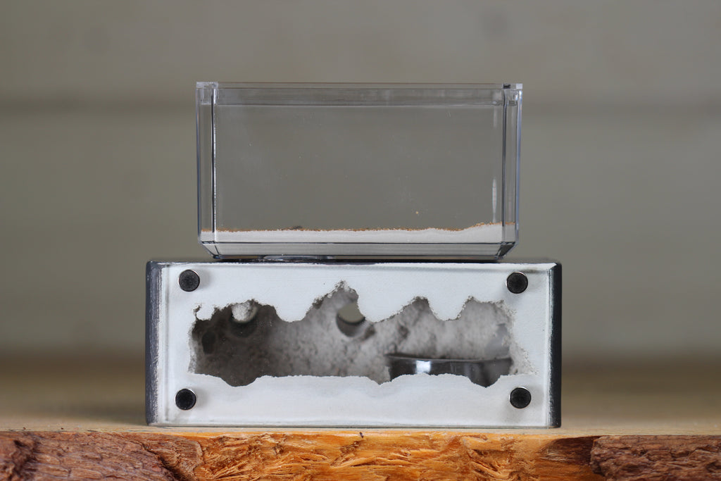Included with this purchase is a syringe for hydration, Mini Hearth PDF guide, nestmates and stoppers, lid, and magnetic glass panel.