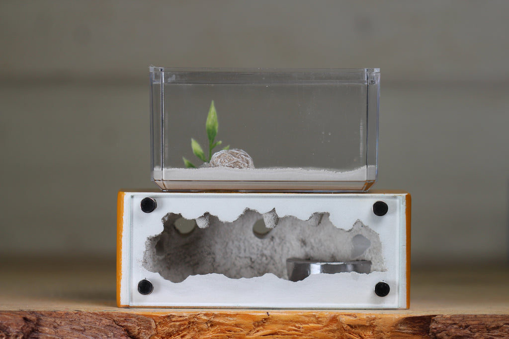 Included with this purchase is a syringe for hydration, Mini Hearth PDF guide, nestmates and stoppers, lid, and magnetic glass panel.