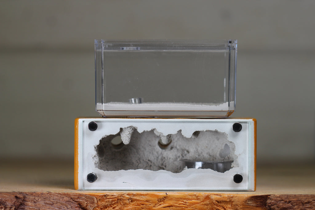 Included with this purchase is a syringe for hydration, Mini Hearth PDF guide, nestmates and stoppers, lid, and magnetic glass panel.