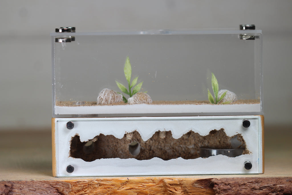 What comes with the Mini Hearth XXL? 2 Nestmates, 3 stoppers (3/8"), Syringe and blunt tip adapter, Feeding Dish