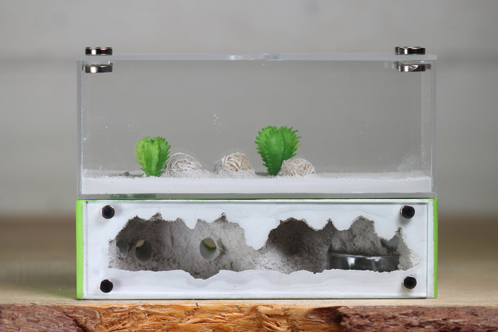 What comes with the Mini Hearth XXL? 2 Nestmates, 3 stoppers (3/8"), Syringe and blunt tip adapter, Feeding Dish